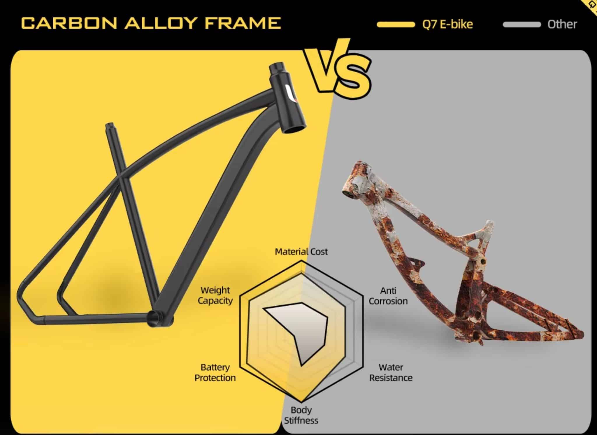 Az AAIRSK Q7 alapját egy rendkívül stabil és tartós, magas széntartalmú acél váz adja, amely kiemelkedő szerkezeti integritást biztosít. Ez az anyagválasztás garantálja, hogy a kerékpár hosszú évekig ellenálljon a napi igénybevételnek, miközben merev marad a magabiztos irányításhoz. Az acél természetes rezgéselnyelő tulajdonsága még simábbá teszi a haladást az egyenetlen útburkolaton is. A robusztus vázkialakítás nemcsak biztonságot sugall, hanem elegáns, időtálló megjelenést is kölcsönöz a járműnek. Ön egy olyan strapabíró konstrukciót kap, amelyre bármilyen városi kaland során bizalommal számíthat.