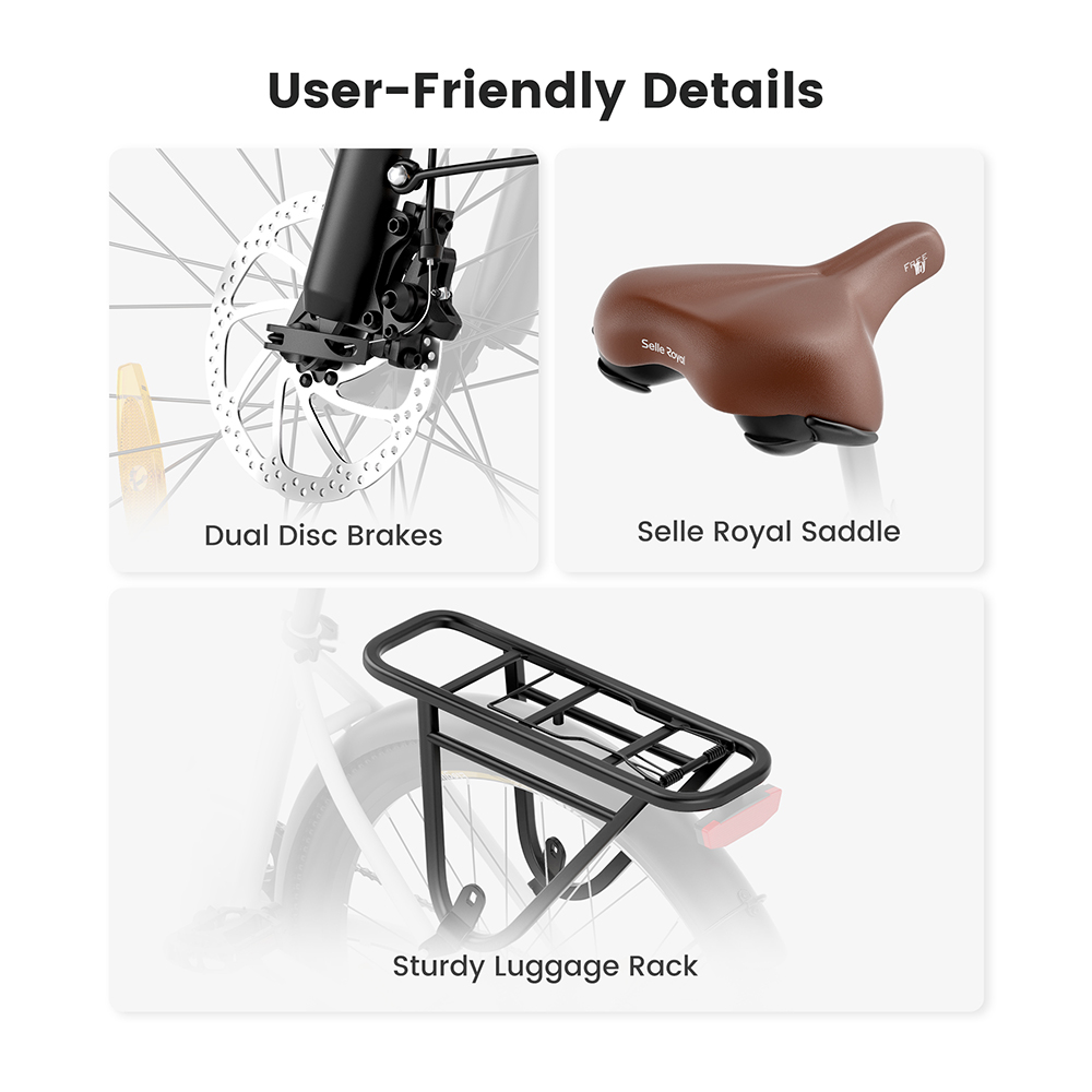 Az ELEGLIDE T1 Elektromos Kerékpár 27,5″ egy sokoldalú, kényelmes és megbízható trekking e-bike, amelyet kifejezetten a mindennapi közlekedéshez és hosszabb túrákhoz terveztek. A step-thru, vagyis alacsony átlépésű váznak köszönhetően rendkívül könnyű a fel- és leszállás, így ideális választás városi közlekedéshez, kirándulásokhoz vagy akár munkába járáshoz is. A nagyméretű 27,5 colos kerekek stabilitást adnak, a dupla első teleszkóp csökkenti az út egyenetlenségeit, a modern elektromos rásegítési rendszer pedig csendes és hatékony működést garantál. A T1 nem csupán kerékpár, hanem egy kényelmes és gazdaságos közlekedési megoldás, amely megkönnyíti a mindennapokat és élvezetesebbé teszi a hosszabb utakat is.