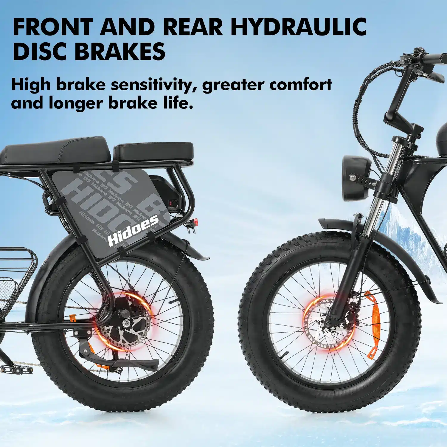 A maximális biztonság érdekében a jármű prémium hidraulikus tárcsafékekkel szerelték fel mindkét keréken. A hidraulikus rendszer előnye a mechanikussal szemben a sokkal finomabb adagolhatóság és a brutális fékerő, amely minimális ujjnyomásra is reagál. Bármilyen időjárási körülmények között, legyen az eső vagy sár, a hidraulikus fékek magabiztos és rövid féktávot garantálnak. Ez a fékrendszer elengedhetetlen egy ilyen tömegű és sebességű járműnél a teljes kontroll fenntartásához. A biztonság nem lehet alku tárgya, és a Hidoes B9 ezen a téren a legmagasabb szintet hozza.