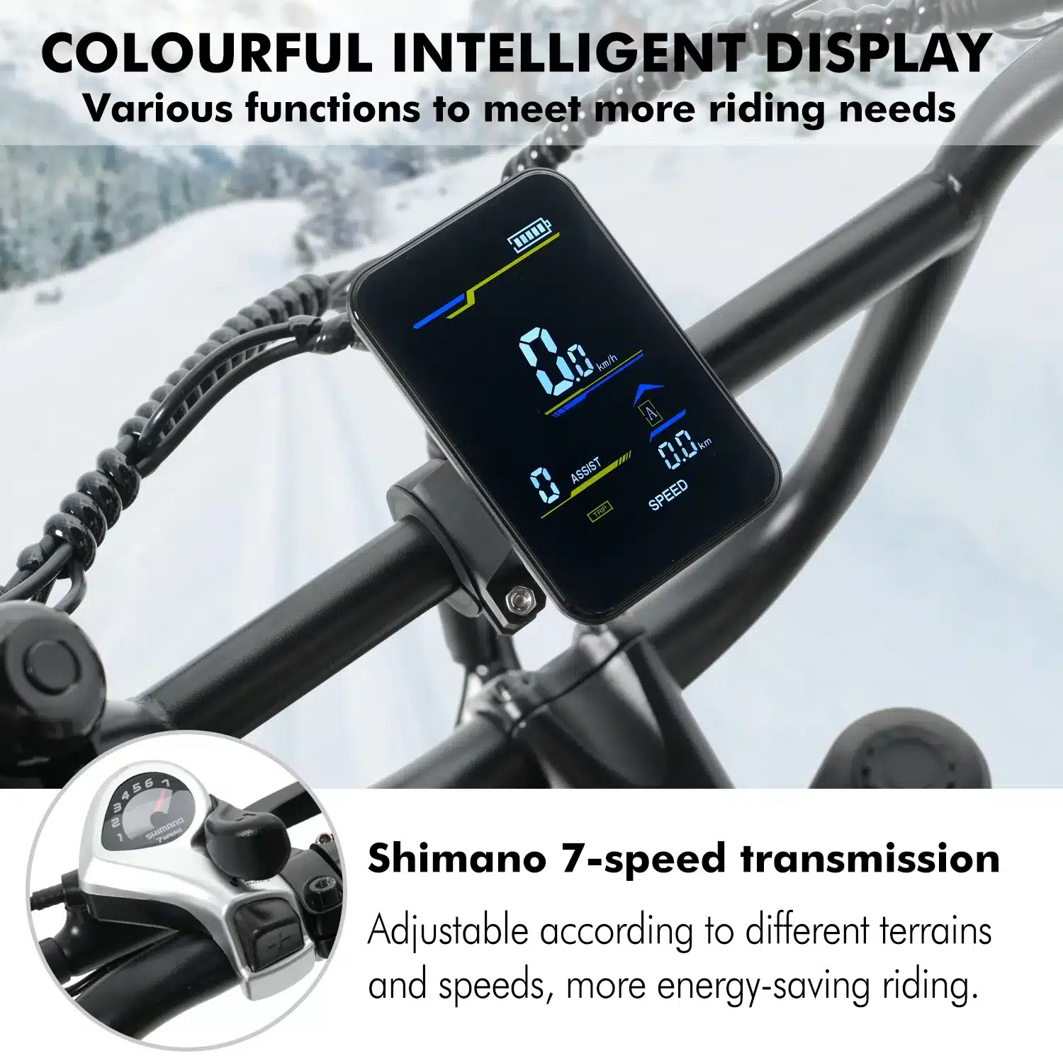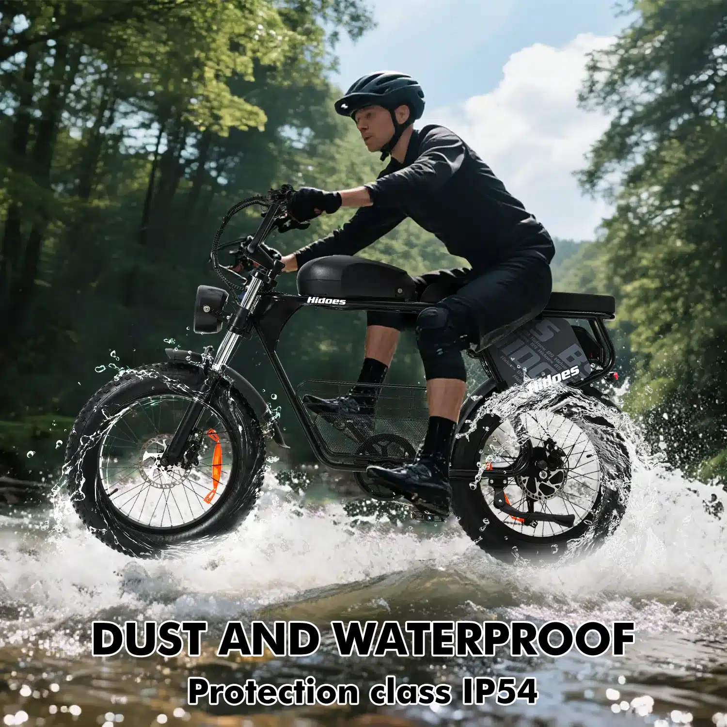 A Hidoes B9 megjelenésének legkarakteresebb elemei a 20×4,0 colos „Fat Tire” kerekek, amelyek bármilyen tereppel megbirkóznak. Ezek a széles, levegős gumiabroncsok rendkívüli tapadást biztosítanak homokon, hóban, sárban vagy nedves aszfalton egyaránt. A ballonos gumik alacsonyabb nyomáson is használhatóak, így plusz lengéscsillapítást és kényelmet nyújtanak az utazás során. A széles kerekek stabilitása miatt a jármű kevésbé érzékeny a nyomvályúkra vagy a sínekre, növelve az Ön biztonságérzetét. Legyen szó erdei utakról, ezek a kerekek megállíthatatlan haladást tesznek lehetővé.