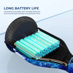 - 6,5 colos LED kerék: Az iHoverboard H4-ben menő LED-es kerekek találhatók, amelyek az éjszakát világítják meg. A 6,5 colos méret simább vezetést tesz lehetővé és könnyebbé teszi a hoverboard irányítását.