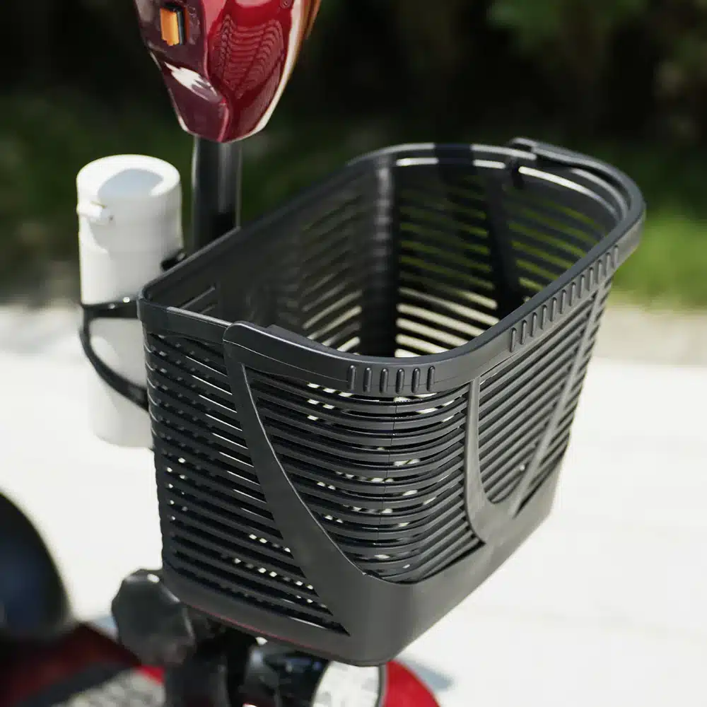 A praktikum jegyében a robogót egy nagy kapacitású első kosárral szereltük fel, amelyben kényelmesen elhelyezheti személyes tárgyait. Legyen szó a napi bevásárlásról, egy táskáról vagy egyéb kiegészítőkről, a tágas tárolórekesz mindenre megoldást nyújt. A kosár stabilan rögzített, így a csomagok nem mozdulnak el vezetés közben, megőrizve a jármű egyensúlyát. Ez a hasznos kiegészítő nélkülözhetetlenné teszi az eszközt a mindent megoldó hétköznapi logisztikában.