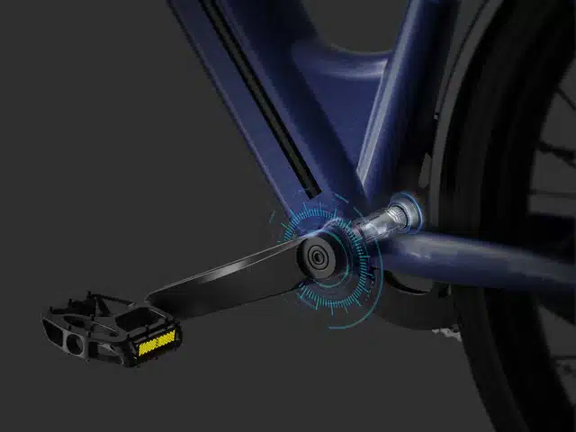 A MOKWHEEL Asphalt egyik legnagyobb előnye a kombinált nyomaték- és pedálfordulat-érzékelő, amely intuitív és természetes tekerési élményt nyújt. A rendszer nemcsak azt figyeli, hogy forog-e a pedál, hanem azt is, hogy Ön mekkora erőt fejt ki, és ehhez mérten adagolja a segítséget. Ez a kettős szenzoros technológia azonnali reakciót tesz lehetővé: amint erősebben nyomja a pedált, a motor azonnal több erőt ad le. Ennek köszönhetően a kerékpár rendkívül energiatakarékos, hiszen csak annyi energiát használ fel, amennyire éppen szükség van. Ez a kifinomult vezérlés teszi igazán prémiummá és „okossá” a kerékpározást.