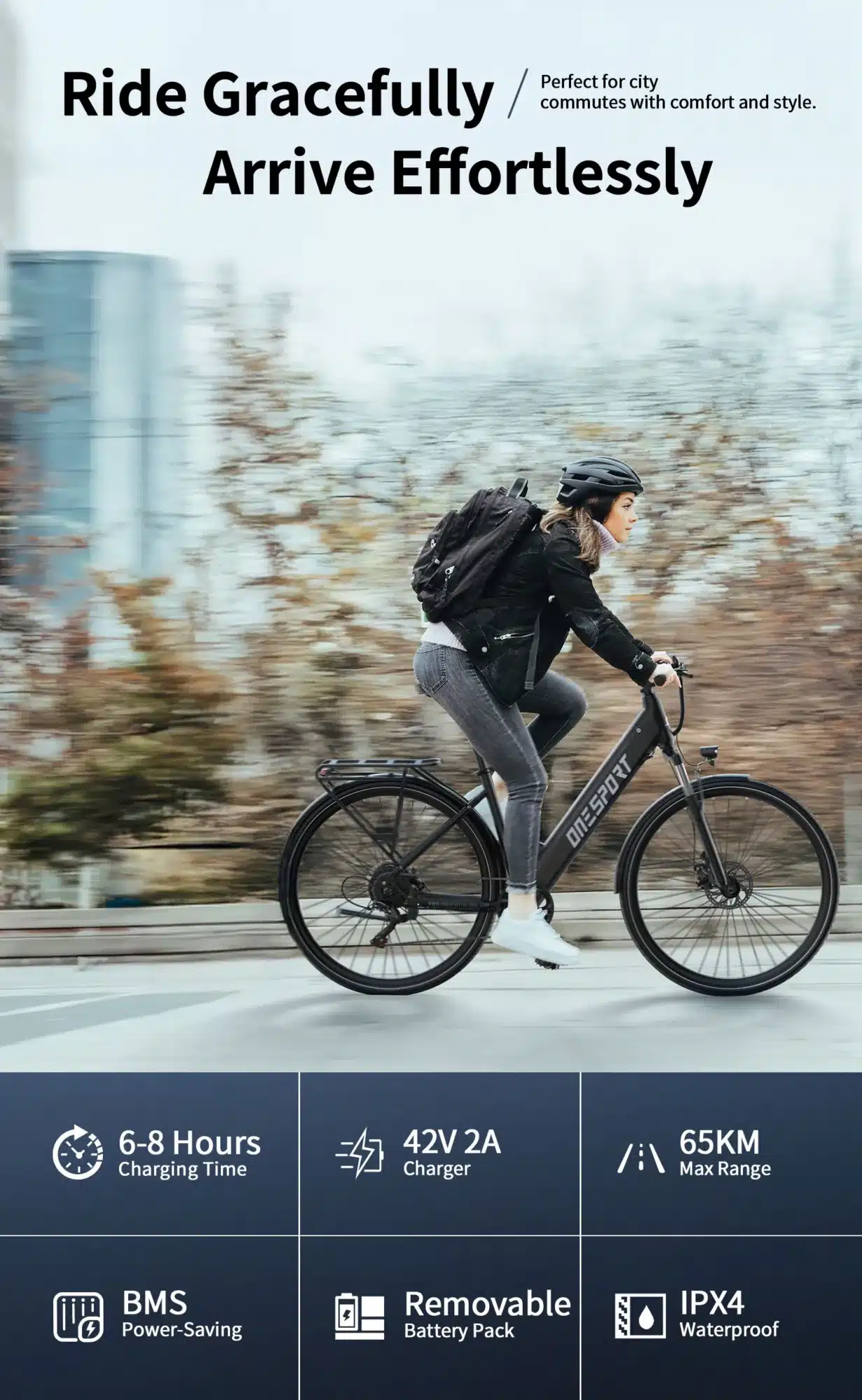 ONESPORT OT12 Elektromos Kerékpár 27,5″ Fekete|Fehér 468Wh