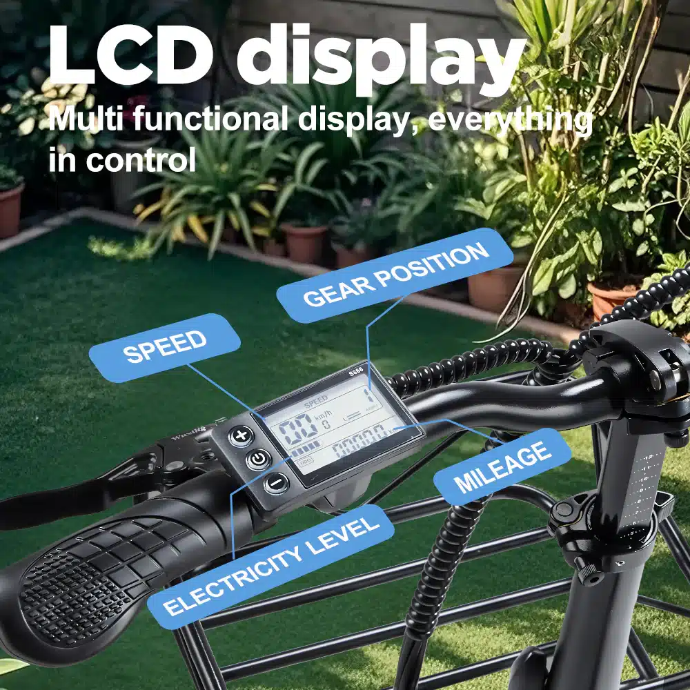 A Randride YA20 összecsukható elektromos kerékpár modern és praktikus közlekedési eszköz, amely kiváló választás városi és vidéki használatra egyaránt. Az alumíniumötvözet váz tartósságot és könnyű súlyt biztosít, így könnyedén hordozható és tárolható. Az 500W teljesítményű kefe nélküli hátsó agymotor és a 48V-os, 12,8Ah kapacitású lítium akkumulátor hosszú hatótávolságot és gyors töltési időt garantál. A kerékpár 7 sebességes Shimano váltóval van felszerelve, amely sima és megbízható váltást biztosít. A 20 colos kerekek és az állítható első villa, valamint a hátsó felfüggesztés kényelmes és biztonságos utazást tesz lehetővé bármilyen terepen. Az LCD kijelzőn könnyedén nyomon követhető minden fontos adat, mint például a sebesség, az akkumulátor töltöttségi szintje és a megtett távolság. Az első és hátsó LED világítás biztosítja a megfelelő láthatóságot éjszaka is, növelve ezzel a biztonságot. Az állítható magasságú nyereg és kormány kényelmet biztosít különböző magasságú felhasználók számára, míg a maximális terhelhetőség 150 kg-ig lehetőséget ad a különféle igények kielégítésére.
