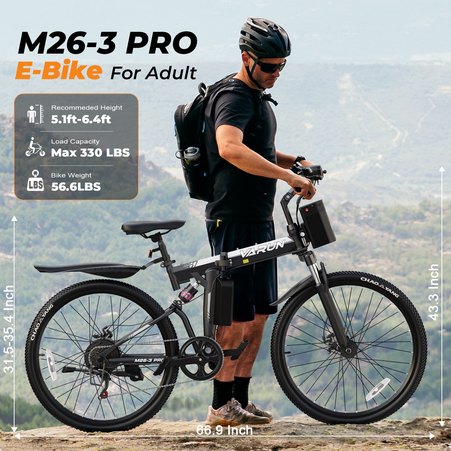 VARUN M26-3 PRO Összecsukható Elektromos Kerékpár 26″ Fekete-Piros/Fehér|Ezüst-Narancs/Fekete 375Wh